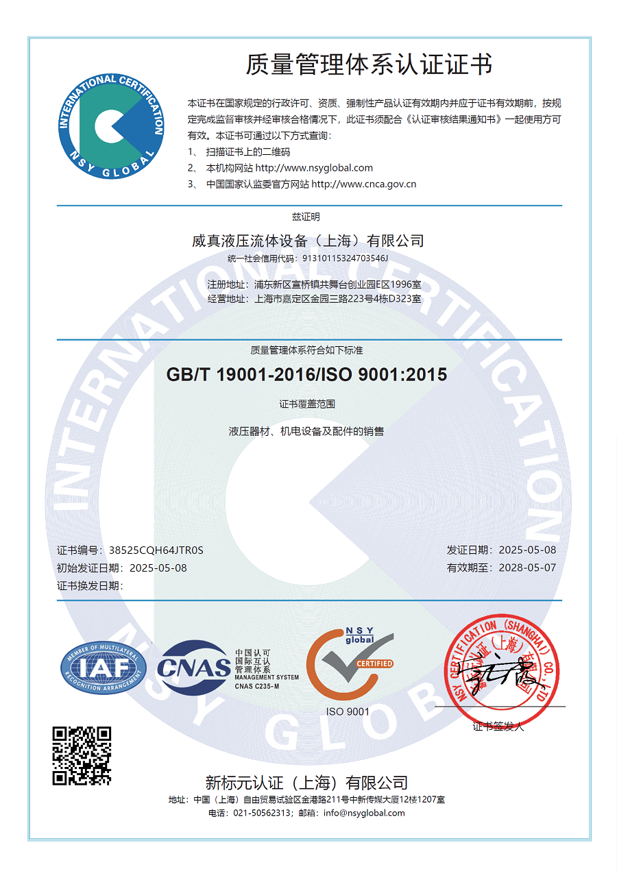 • 威真液壓已完成ISO9001質(zhì)量體認(rèn)證